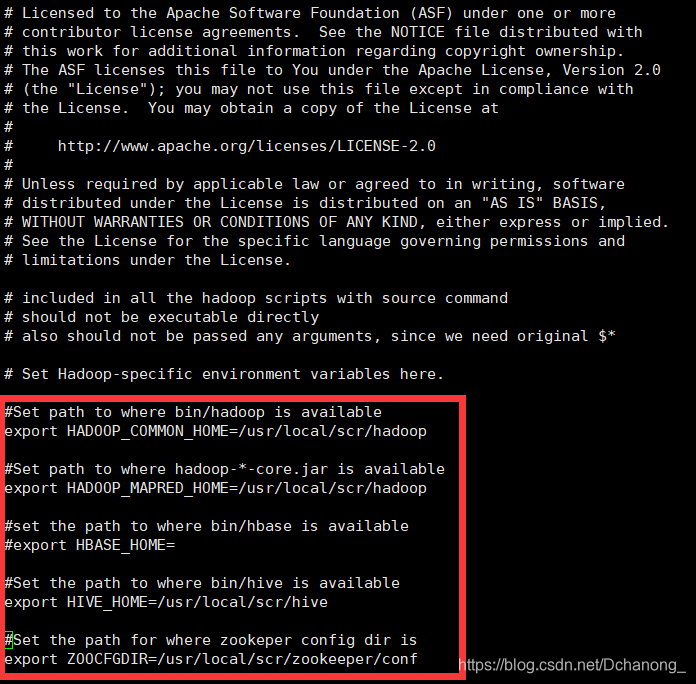 修改 sqoop-env. sh 配置文件,添加您所拥有的文件路径(**注意前面的 #注释符号 **),没有的可以不填!