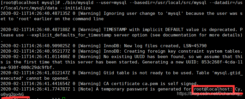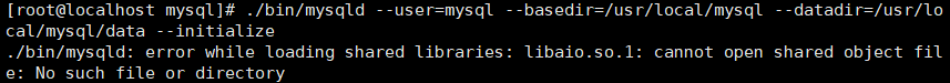 [root@localhost mysql]# ./bin/mysqld --user=mysql --basedir=/usr/local/src/mysql --datadir=/usr/local/src/mysql/data --initialize如果报错,出现下图所示内容