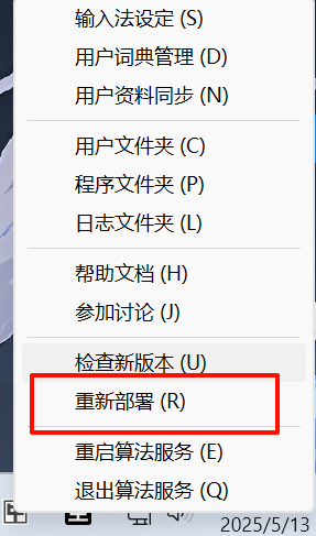 右键 Rime 输入法图标,点击 重新部署