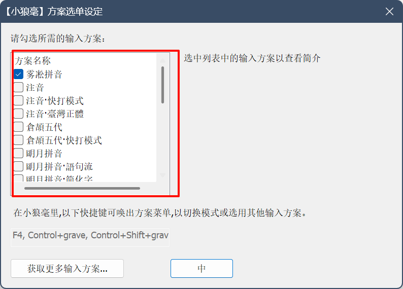 同样,Rime 输入法图标右键,点击 输入法设定,勾选需要的输入方法即可。